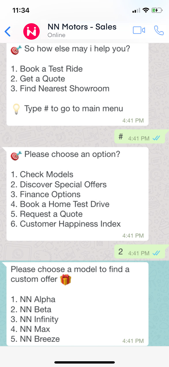 Provide instant information about vehicles, specifications, variants and other details through WhatsApp. Keep your customers up to date about new models and seasonal discounts. Your customers need not even call you for any information about a particular vehicle of their interest, it is all available to them anytime, anywhere on WhatsApp. This is a very effective way to improve customer engagement and keep their interest levels high.